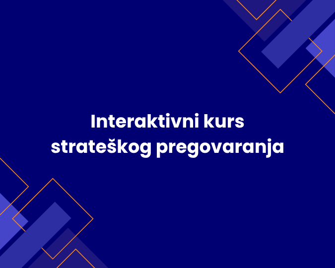 Interaktivni kurs strateškog pregovaranja 28-30. oktobar 2025. Program stručnog usavršavanja namenjen zaposlenima u javnoj upravi i partnerima iz privatnog sektora. Obuhvata faze pregovaračkog procesa, formiranje timova i uloga, izbor stilova i taktika, rad sa različitim psihološkim profilima i završnu simulaciju realne pregovaračke situacije. Predavači: prof. dr Vladimir Ajzenhamer i dr Veljko Blagojević. Za polaznike je predviđena potvrda o uspešnoj realizaciji; formalno ocenjivanje moguće je na zahtev polaznika ili poslodavca. |