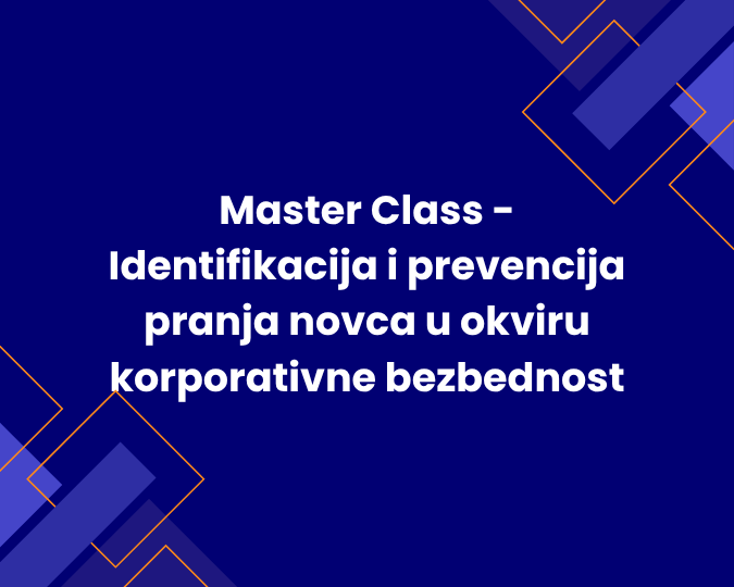 Finansijska forenzika 3: “Master Class - Identifikacija i prevencija pranja novca u okviru korporativne bezbednosti Ovladavanje osnovama pranja novca i njegovih faza (identifikacija, forenzičko praćenje i obrada). Primena metodologije istrage u AML kontekstu i upoznavanje sa osnovama mašinskog učenja u otkrivanju anomalija i sumnjivih transkacija. Trajanje 5 dana. Predavači: prof. dr Branko Urošević; dr Nikola Seneši, FRICS, ACFE; Goran Kojić-glavni forenzički veštak za forenzičko psihološke analize i poligrafska ispitivanja i Vladimir Glamočanin, AML ekspert |