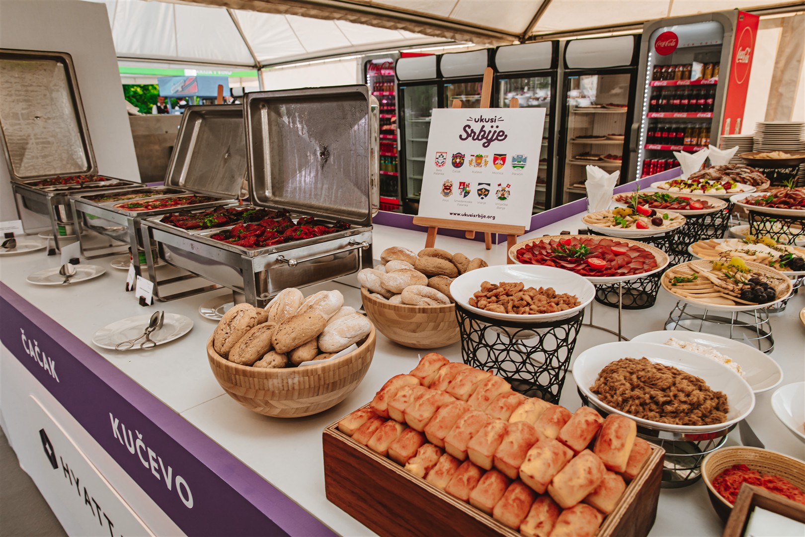 U okviru programa, gosti su uživali u specijalitetima Ukusa Srbije koje pripremio šef kuhinje hotela Hyatt Milan Čotra, uz autentične namirnice iz devet gradova i opština - Bele Palanke, Čačka, Kučeva, Mionice, Paraćina, Pirota, Smederevske Palanke, Vranja i Vrnjačke Banje i tradicionalnim mantijama iz restorana Sve pod sač iz Novog Pazara. Vino večeri iz vinarije „100 žena“ obezbedila je kompanija Metro Cash & Carry.